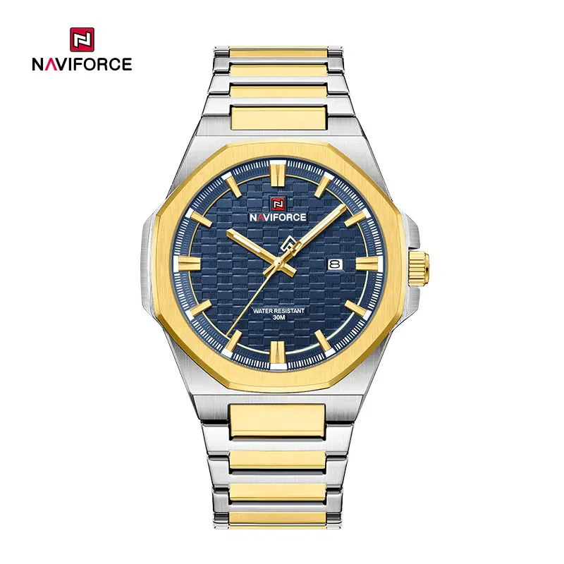 ساعت مچی مردانه نیوی فورس 9245، ترکیبی از شیک و دوام با طراحی بینظیر است. بند استیل ضد زنگ و صفحه نمایش جذاب با رنگهای مدرن آبی و طلایی، جذابیت خاصی به استایل شما میبخشد. این ساعت انتخابی ایدهآل برای آقایانیست که به دنبال استایل منحصر به فرد و عملکرد قابل اعتماد هستند. با نیوی فورس، زمان را با سبک تجربه کنید!